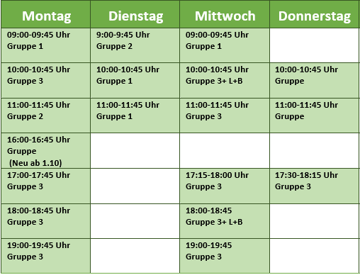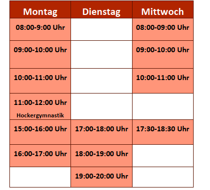 Stand: 16.09.2025 Die Kurse sind nur für Mitglieder mit gültiger Reha-Sport Verordnung und Voranmeldung!!!
